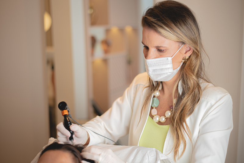 Na consulta médica, coletar uma história bem detalhada, examinar couro cabeludo com auxílio da tricoscopia, em alguns casos precisamos solicitar alguns exames laboratoriais e até biópsia de couro cabeludo. Com isso teremos diagnóstico da patologia que leva a queda cabelo é assim traçamos plano de tratamento capilar.