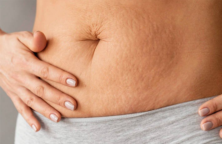 As estrias são cicatrizes lineares que surgem em decorrência da destruição de fibras elásticas e colágenas em áreas de estiramento da pele. Elas começam como uma inflamação e nesse estágio são vermelhas ou arroxeadas. Após cicatrizarem, as estrias se transformam em linhas brancas.